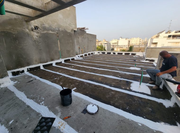יישום שכבת איטום – כעת אחרי שהגג מוכן לחלוטין, הגיע הזמן להתחיל את שכבת האיטום הראשונה. יש לבחור בהתאמה מוחלטת את חומר האיטום, כיוון שחומרי איטום עלולים לדחות זה את זה. חומר האיטום הפופולרי הוא יריעות ביטומניות.